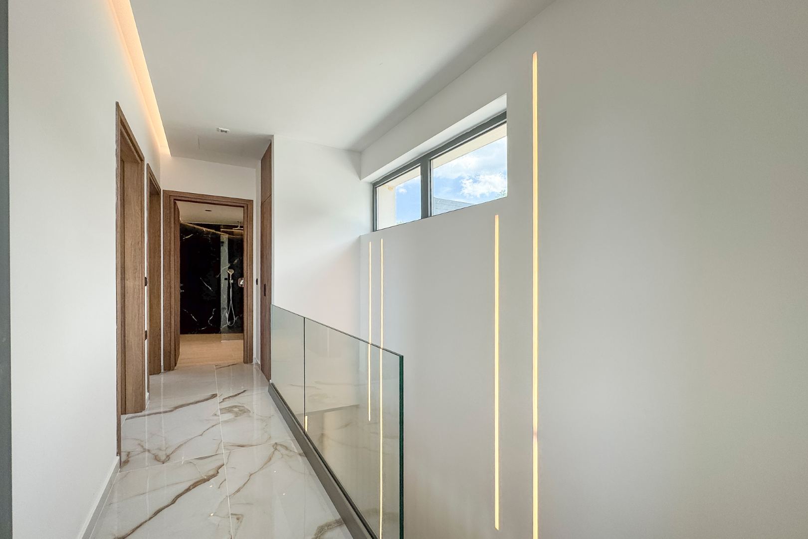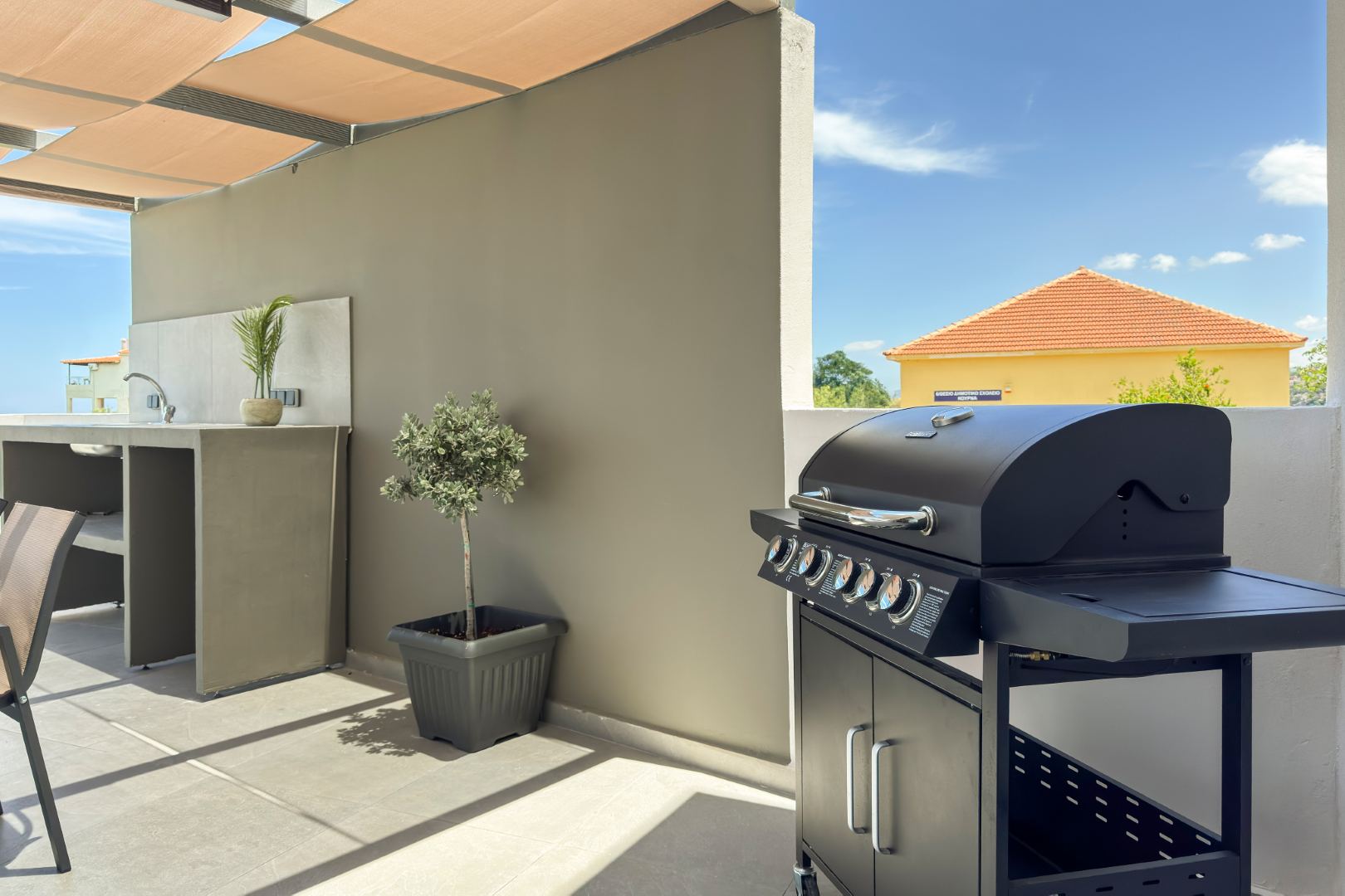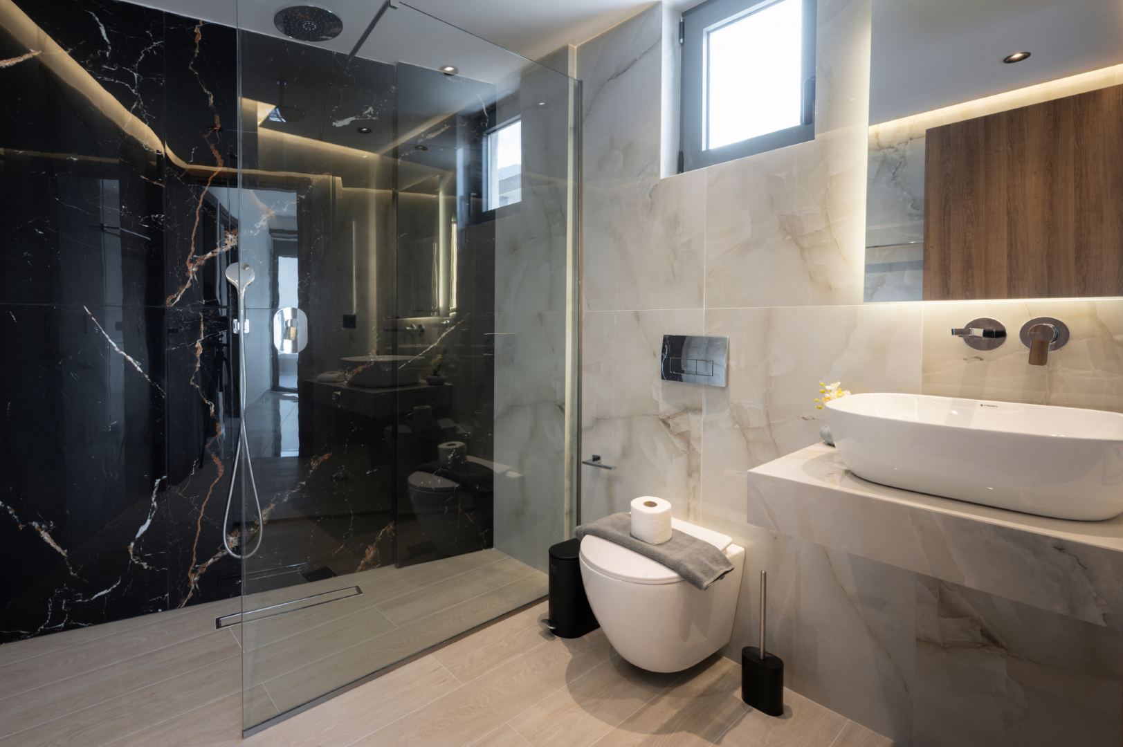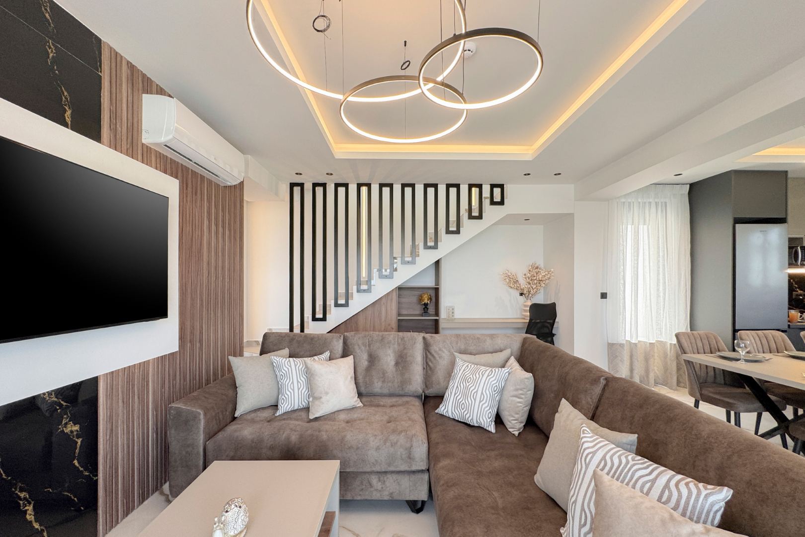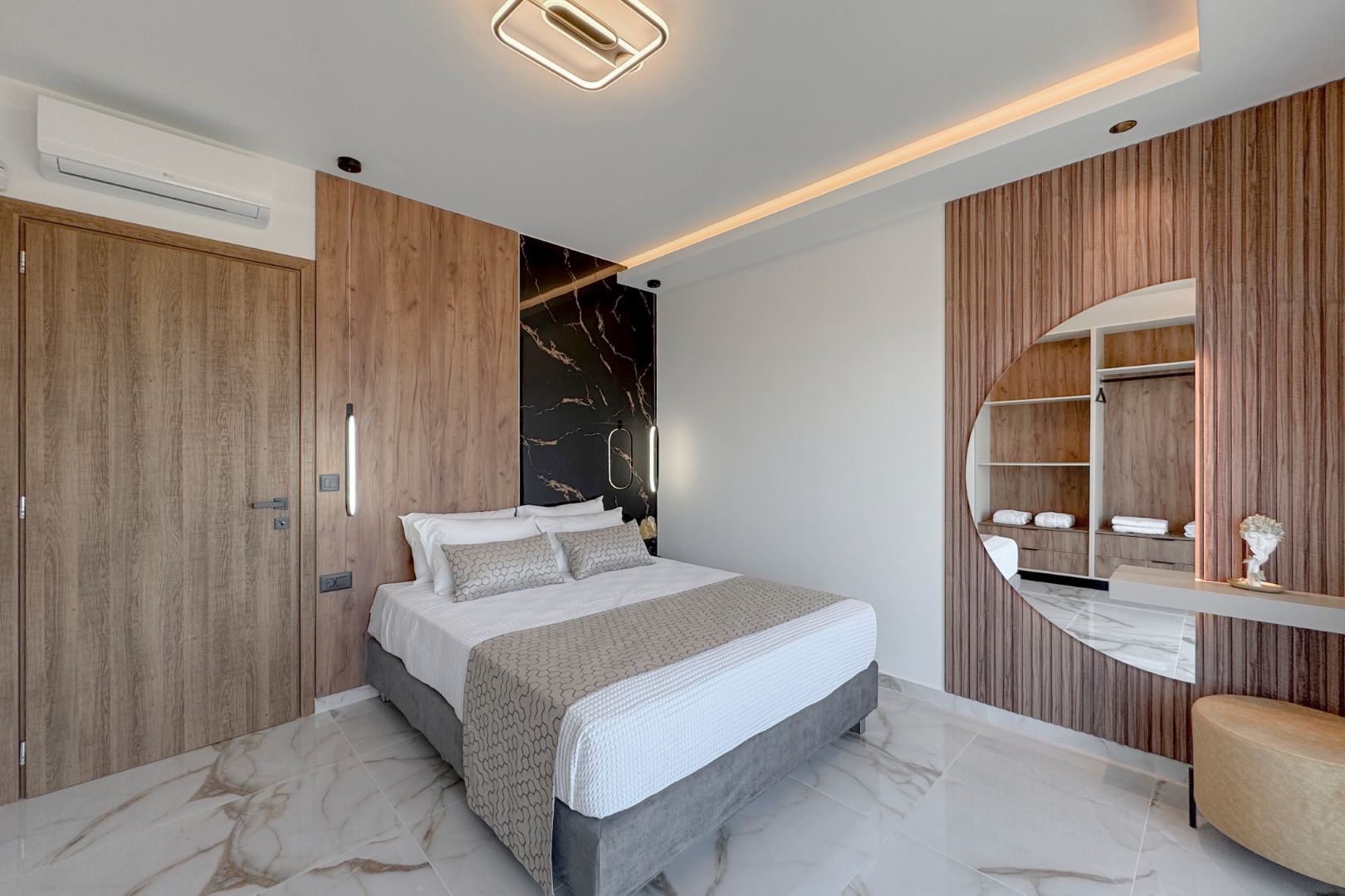 Horizon North Villa is the newest of the four and feels a bit like a stylish hideaway above the valley. The architecture is minimal and fresh, with straight lines, pale tones and lots of glass so the sea and the sky are always part of the view. Inside you have three comfortable bedrooms, two with queen size beds and one with twin beds, which makes the layout very flexible for families or friends travelling together. The open plan living area brings the kitchen, dining space and lounge all in one bright room that opens directly to the pool terrace, so you can move in and out without thinking about it. Outside, the private pool, sun loungers and barbecue corner create a relaxed outdoor living area where most guests end up spending most of the day. Horizon North Villa works very well if you want a modern base with a quiet, almost retreat like feeling but still close to the lake, the beaches and small Cretan villages.