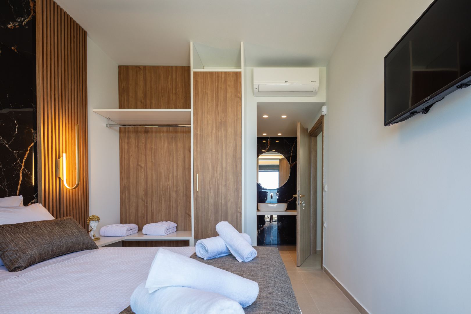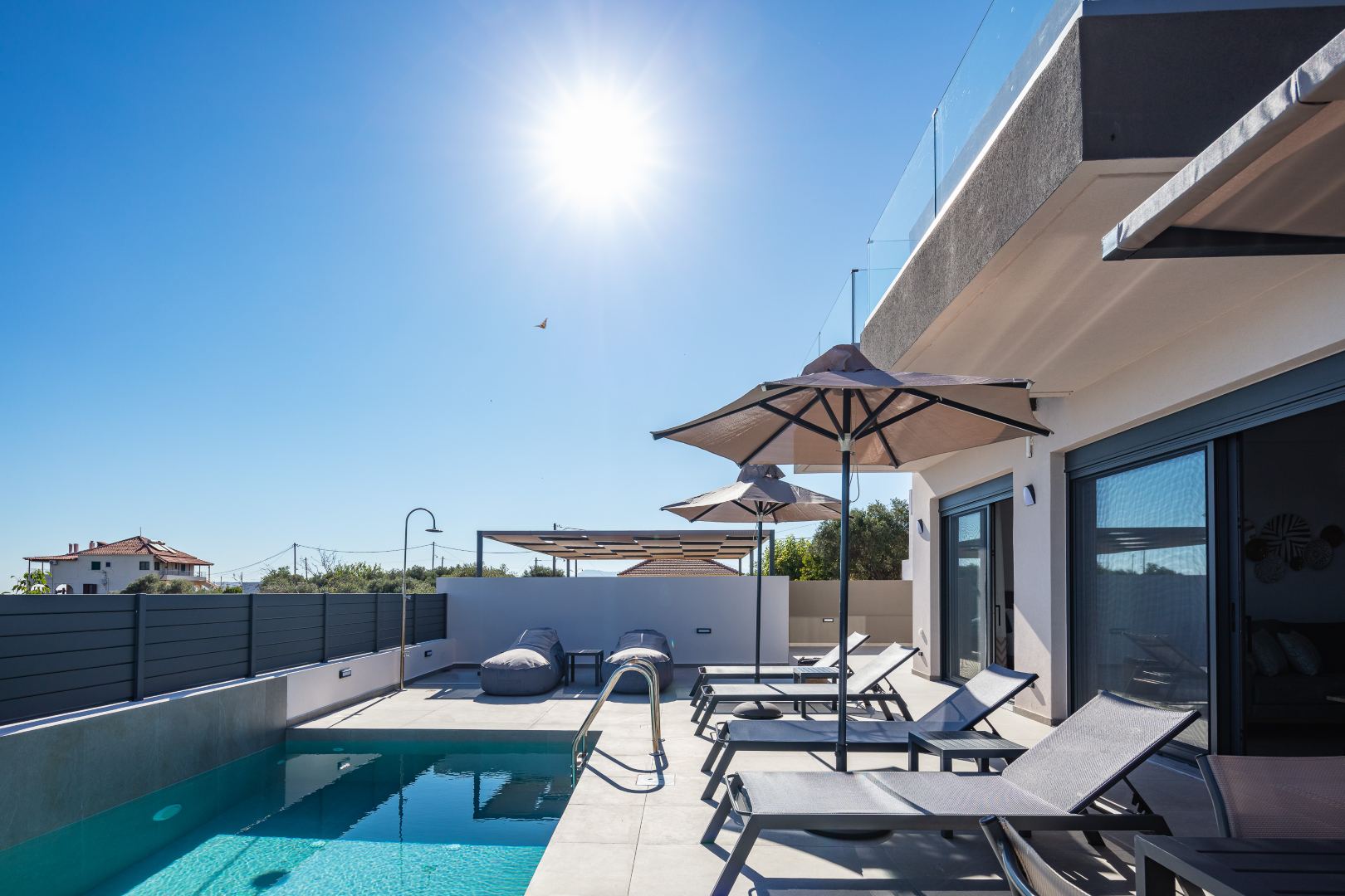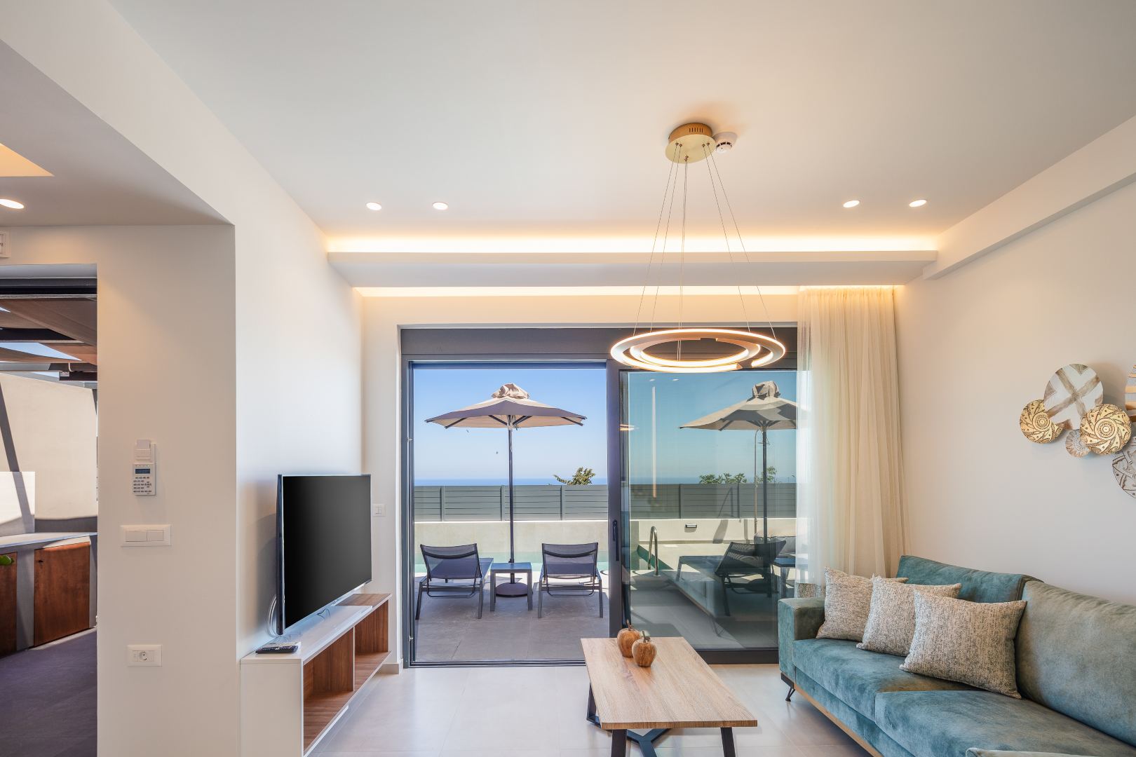 Horizon West Villa has a strong contemporary character and is all about open spaces and views. The villa is designed for up to six guests and offers three stylish bedrooms, each with comfortable beds and plenty of storage, plus three modern bathrooms. The main living area feels airy and modern, with a sleek kitchen, dining table and a cozy lounge corner that naturally extends out to the terrace through large windows. Outside, the private pool is positioned to make the most of the sea view, with sun loungers, a shaded sitting area and a built in barbecue for evenings at home. Details like smart TV, espresso machine, dishwasher, washing machine, fast WiFi and thoughtfully chosen lighting make it easy to combine remote work, family time and holiday mood in the same trip. Horizon West Villa is ideal for guests who love a clean, modern design and want a base that feels both sophisticated and very practical for exploring Lake Kournas, Georgioupolis and the wider Chania region.