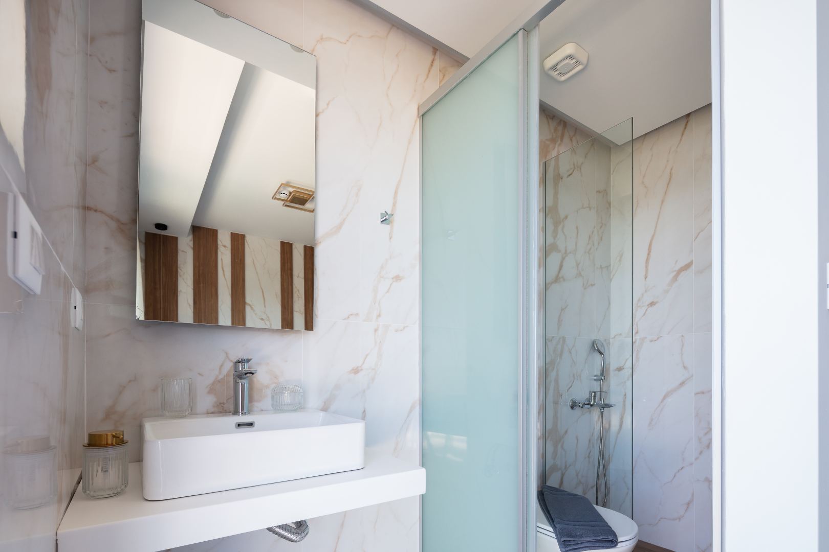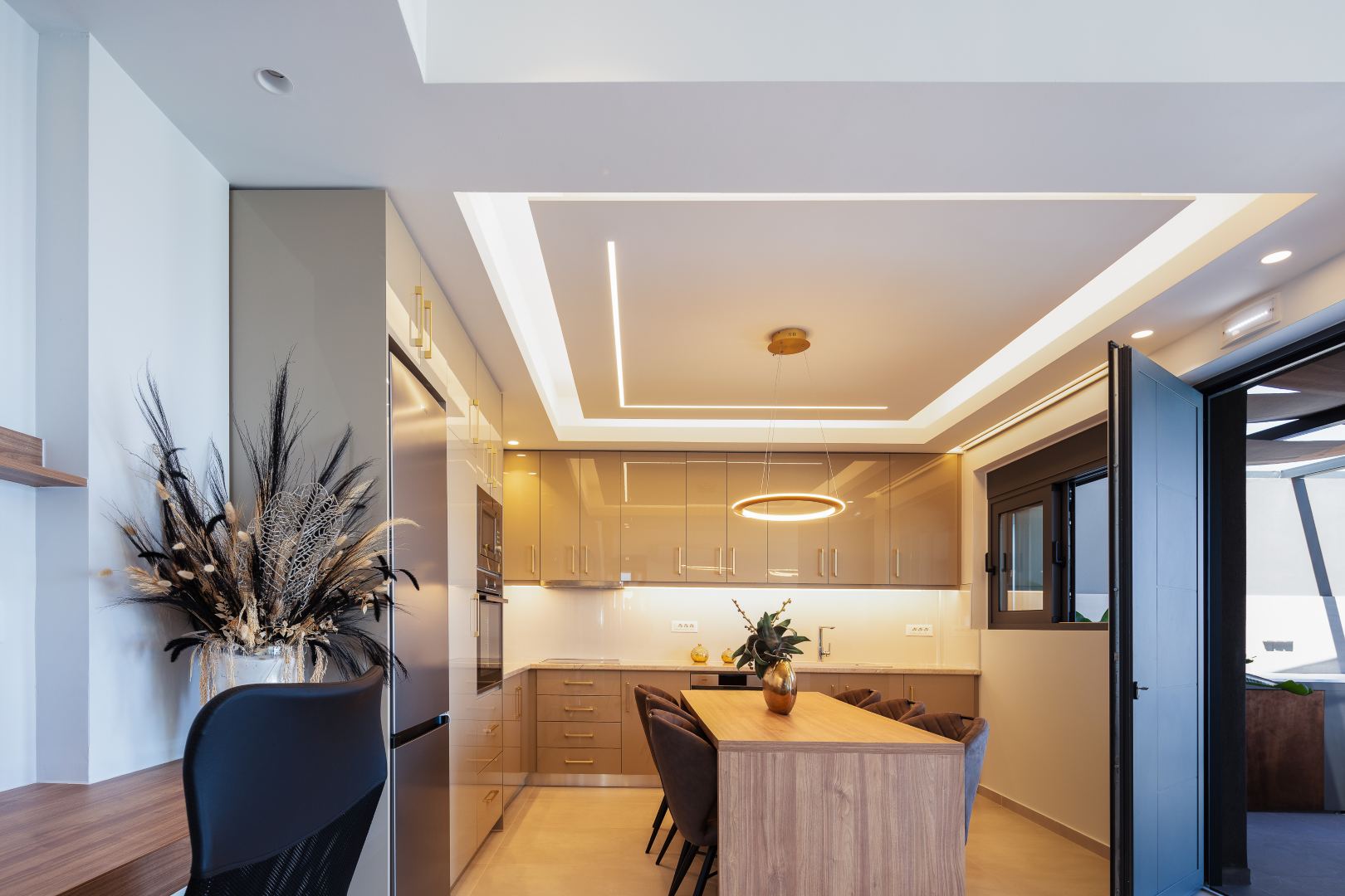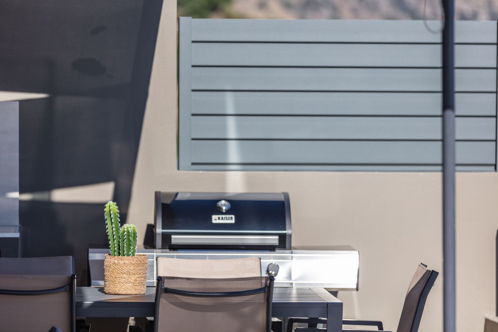 Horizon West Villa has a strong contemporary character and is all about open spaces and views. The villa is designed for up to six guests and offers three stylish bedrooms, each with comfortable beds and plenty of storage, plus three modern bathrooms. The main living area feels airy and modern, with a sleek kitchen, dining table and a cozy lounge corner that naturally extends out to the terrace through large windows. Outside, the private pool is positioned to make the most of the sea view, with sun loungers, a shaded sitting area and a built in barbecue for evenings at home. Details like smart TV, espresso machine, dishwasher, washing machine, fast WiFi and thoughtfully chosen lighting make it easy to combine remote work, family time and holiday mood in the same trip. Horizon West Villa is ideal for guests who love a clean, modern design and want a base that feels both sophisticated and very practical for exploring Lake Kournas, Georgioupolis and the wider Chania region.